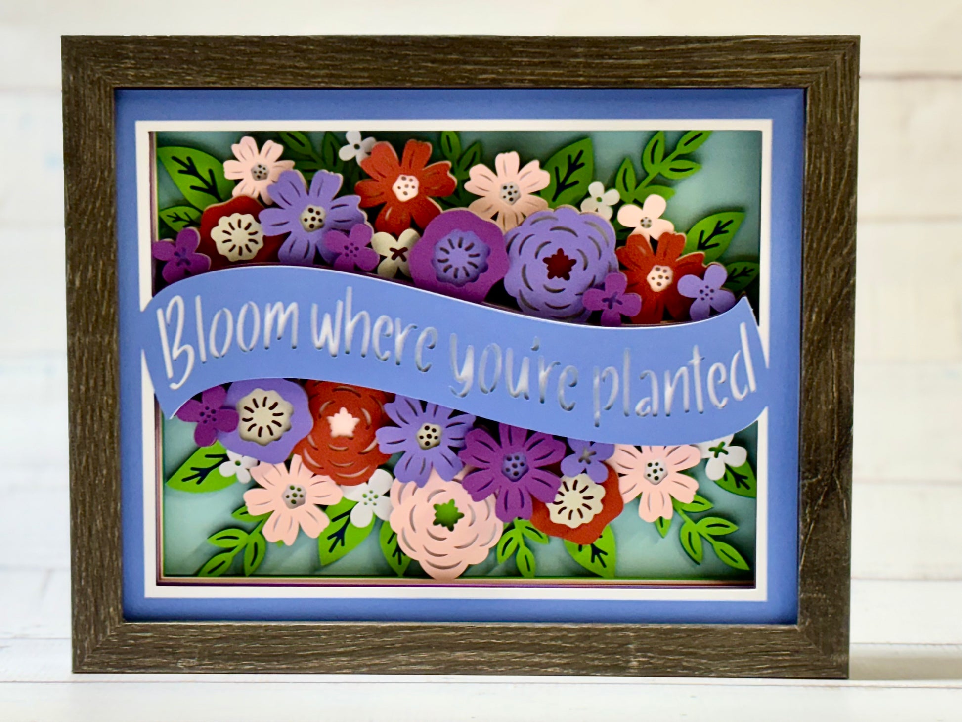 This Bloom Where You're Planted Shadow Box is a beautiful addition to any home decor. Featuring blooming flowers and the inspiring saying "Bloom where you're planted", this shadow box serves as a constant reminder to embrace your surroundings and thrive. The perfect gift for someone looking for a little inspiration in their everyday life.