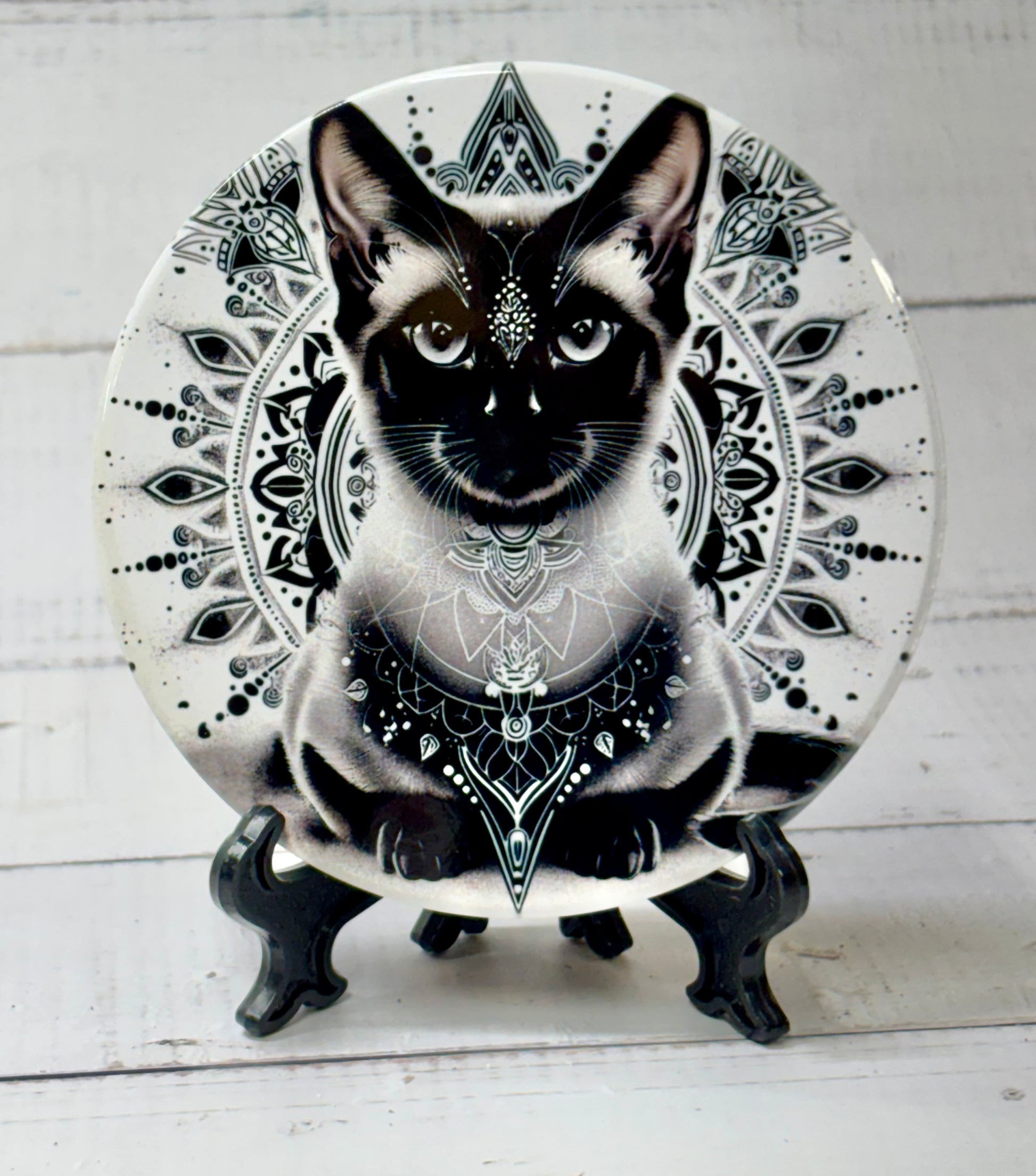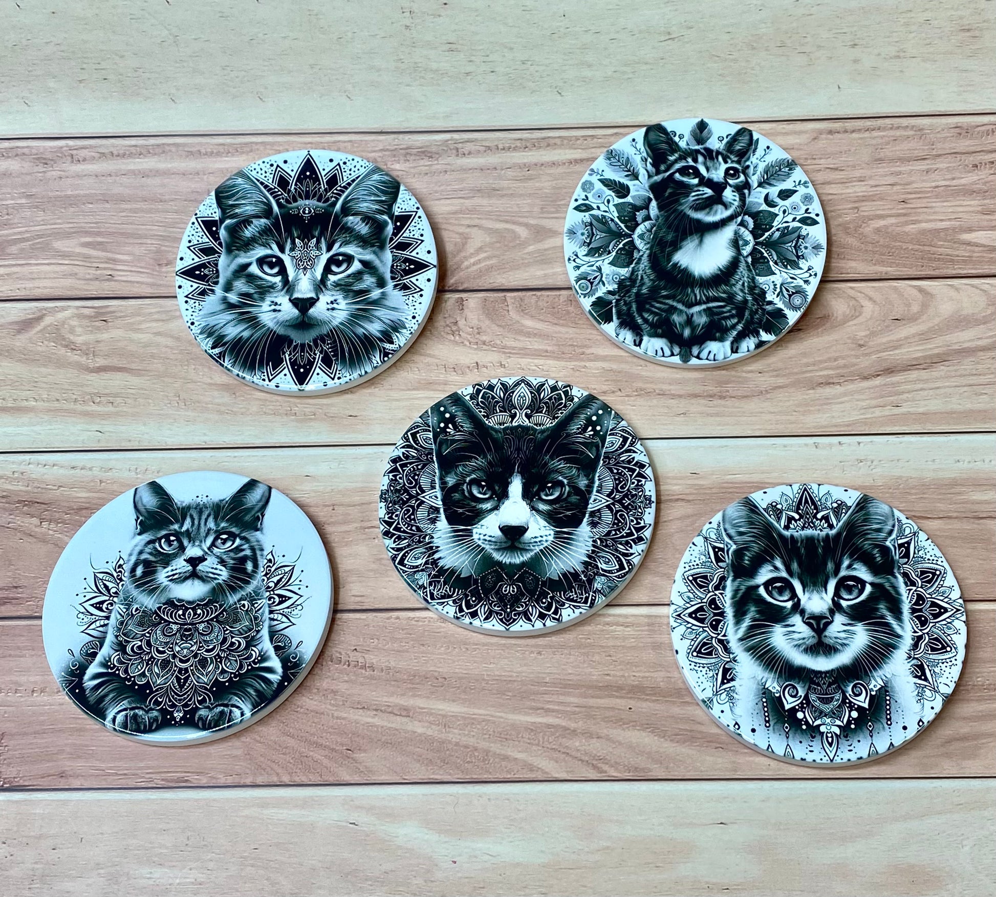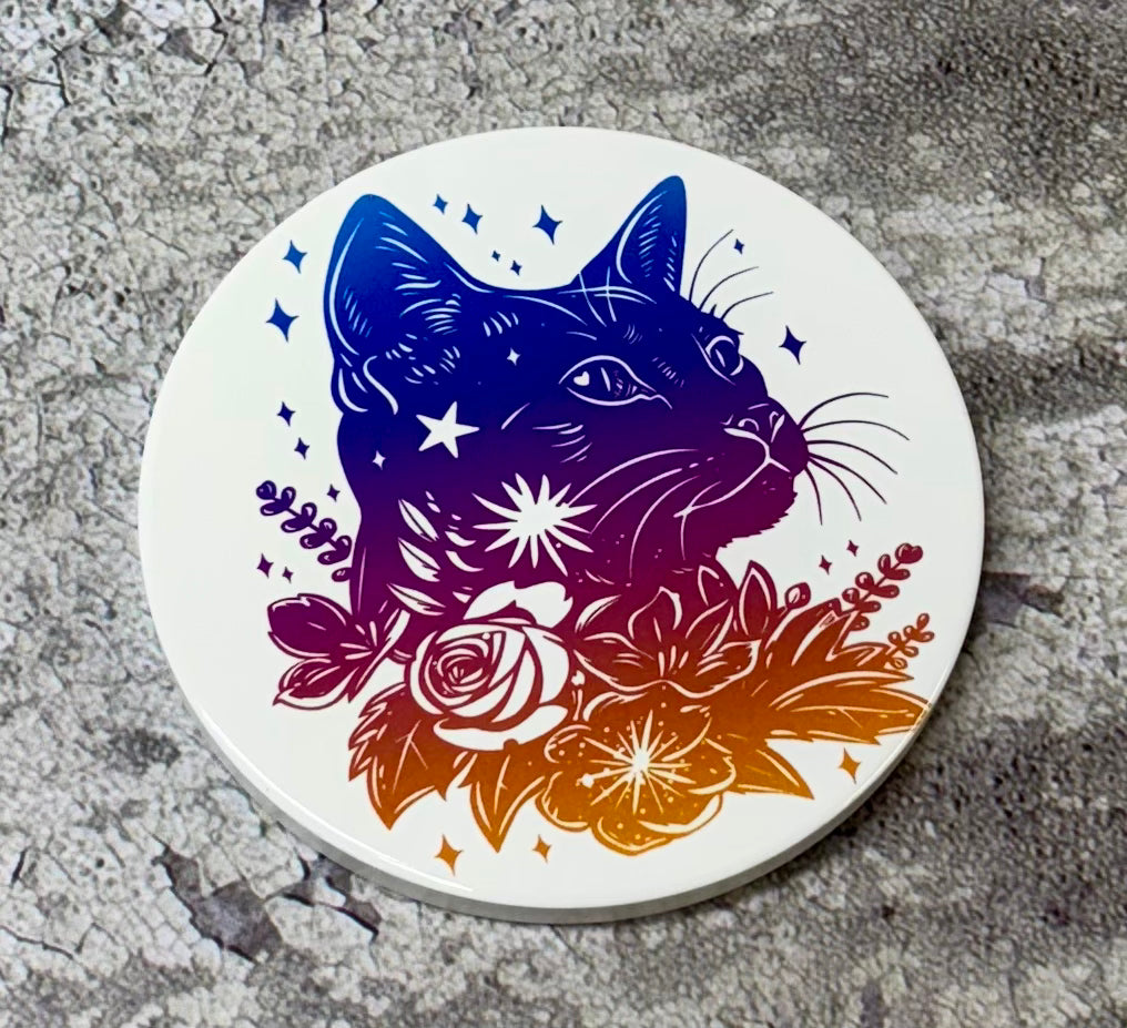 Elevate your home décor with our Cat Coasters. These stylish coasters not only add a pop of color to any room, but also serve as great conversation starters. With their playful cat design, they are sure to bring a smile to your face. Perfect for any cat lover! Customize with your own photo too!