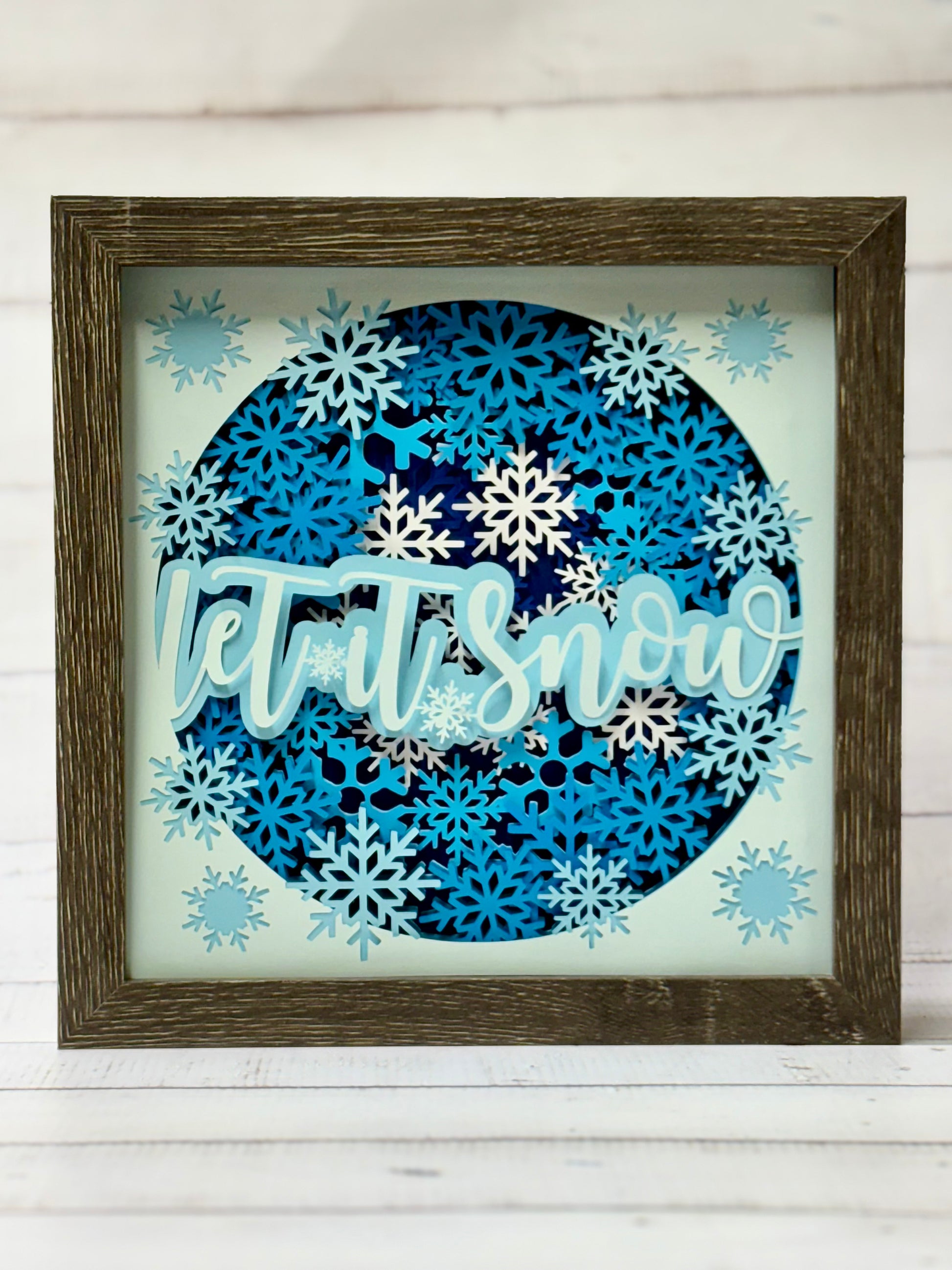 Add a touch of festive charm to your home with our Let it Snow Shadow Box. The delicate snowflakes and "Let it Snow" saying in the center create a winter wonderland feel. Perfect for adding a cozy and stylish touch to any room, this shadow box is a must-have for the holiday season.