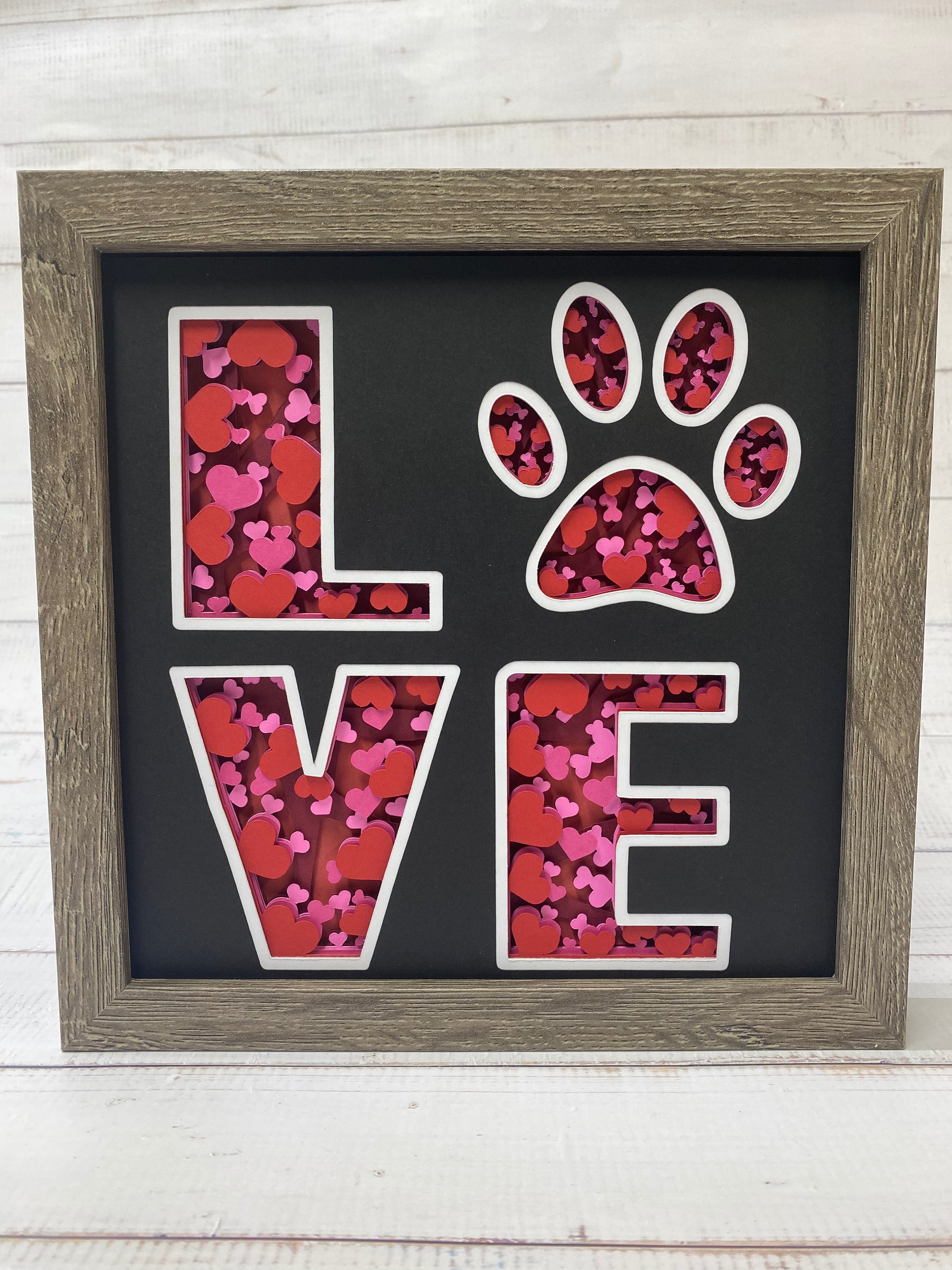 Add a touch of love to your home decor with our LOVE Paw Print Shadow Box. The word "love" is inscribed with a charming paw print in place of the letter O. Made with high-quality materials, this piece is a perfect way to express your love for your furry friend in a beautiful and subtle way.