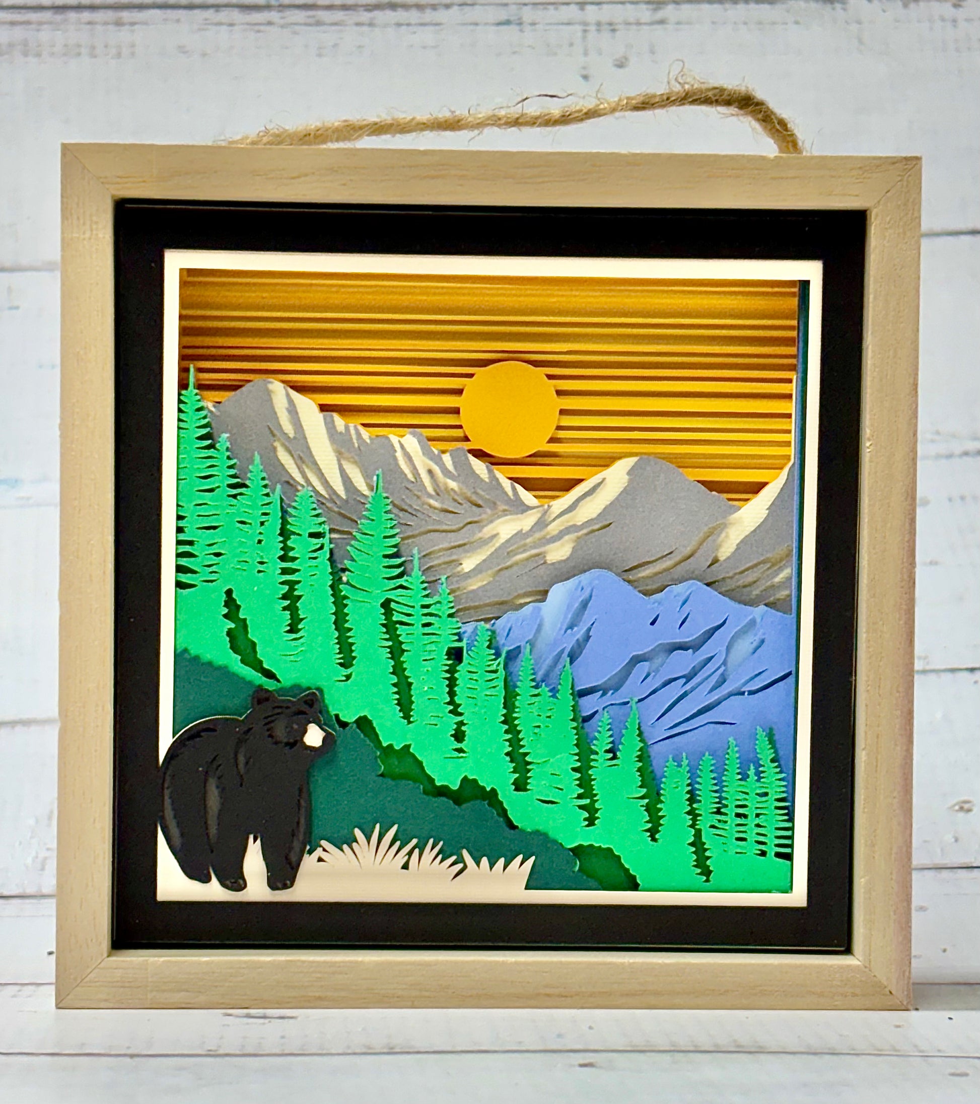 Experience the beauty of the great Smokey Mountains with our Smokey Mountain Shadow Box featuring a majestic black bear. Displayed in a sleek box frame, this stunning piece is a must-have for nature lovers and home decor enthusiasts. Show off your love for the outdoors with this unique and expertly crafted shadow box.